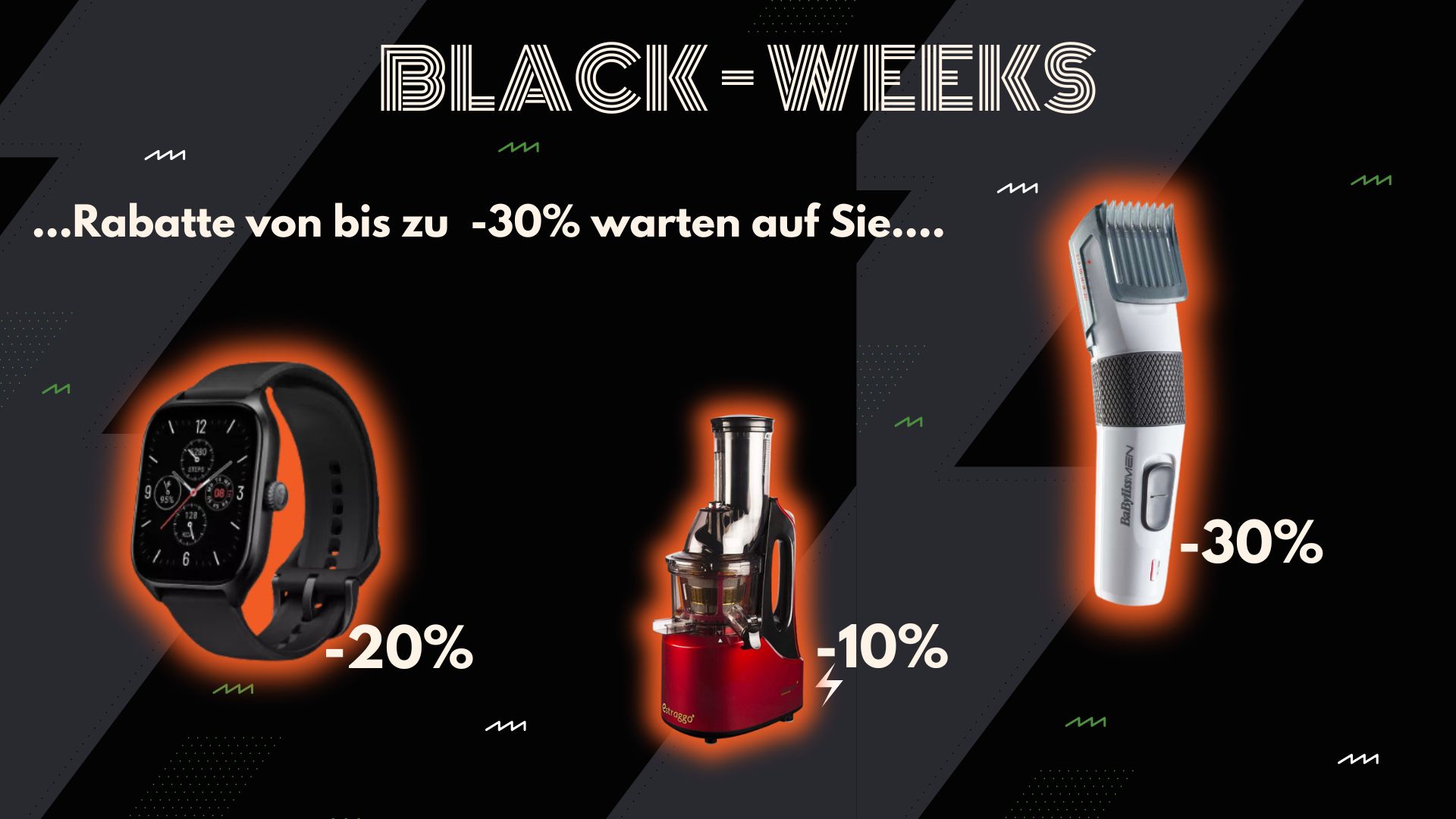 Klicken Sie auf den Link und schauen Sie sich in aller Ruhe die vielen gekennzeichneten Artikel an. Es warten Rabatte von -5% bis -30% aus Sie!